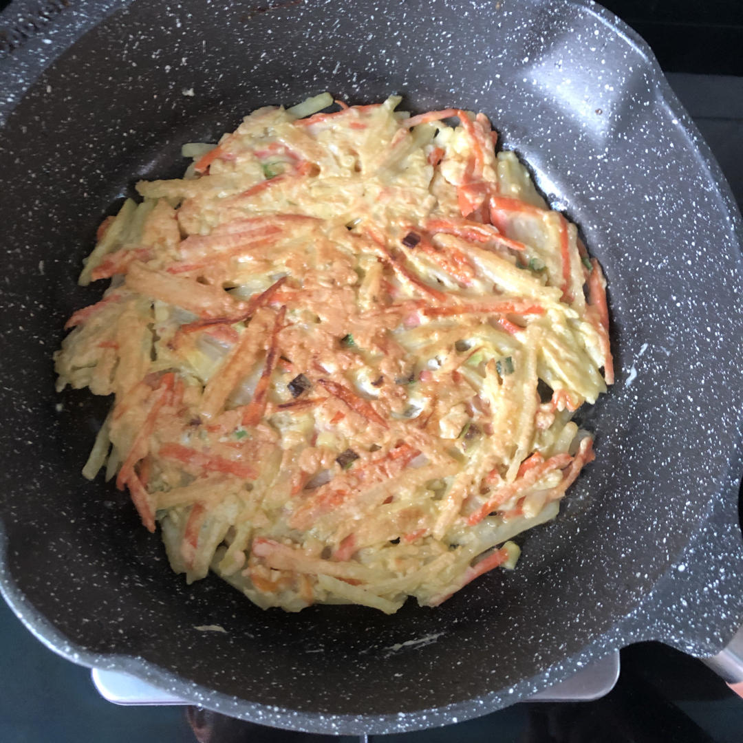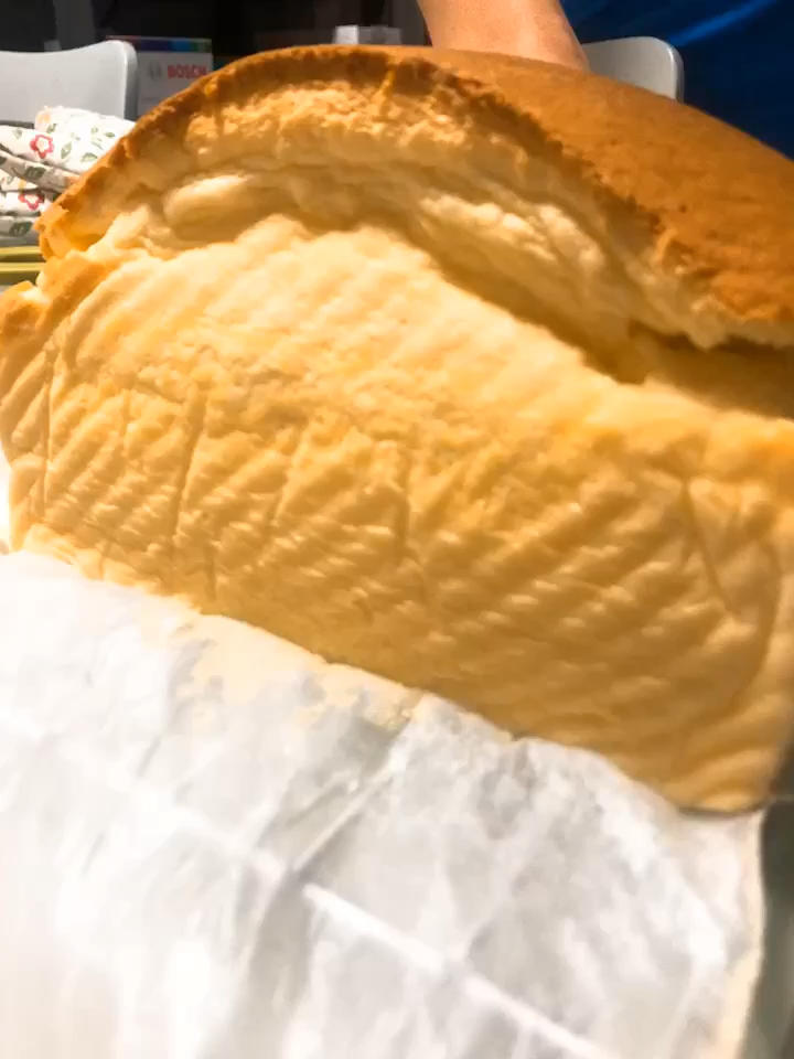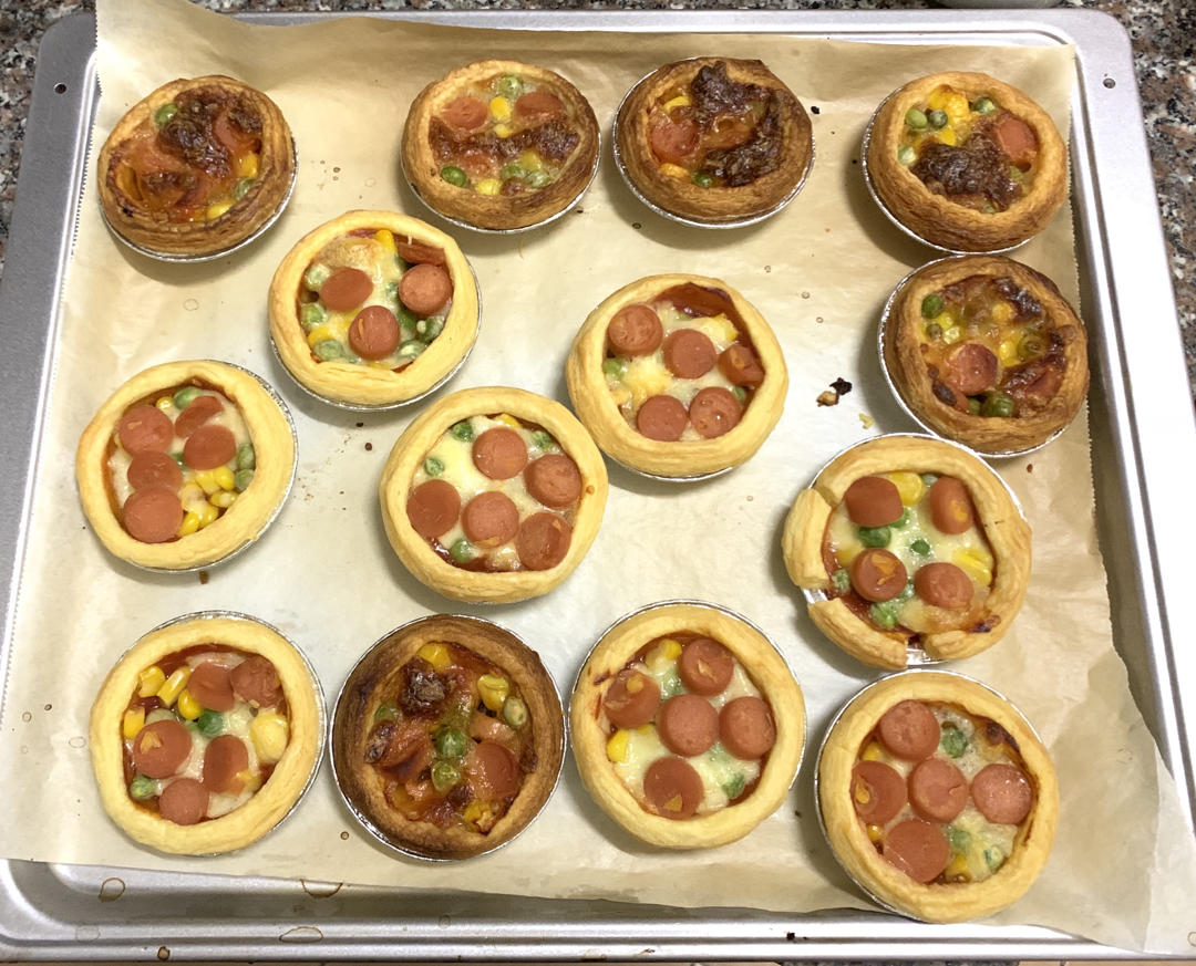 上火120、下火150,隔水,剩30分钟时盖上锡纸。未放芝士的那盒比放了芝士的涨得高得多,触顶焦了一点。
