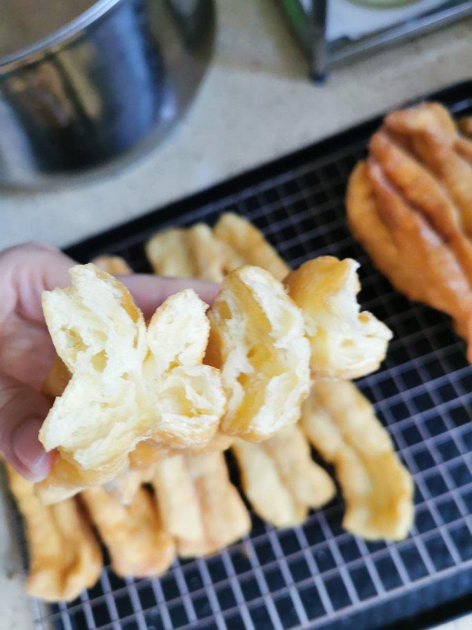 成功做出蓬松的油条真的好多要注意的,以为无关痛痒的小细节,确是成败的关键。第一次面片切太窄了,然后又用筷子压的紧,所以两...