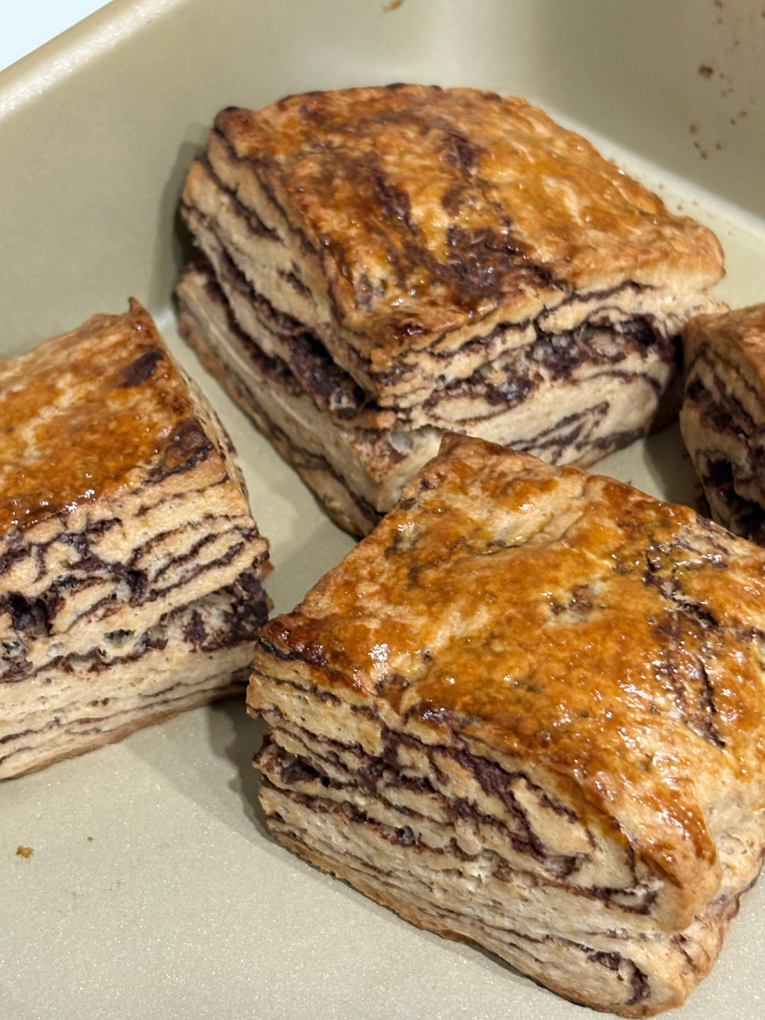 冷冻后400°F 烤 10 分钟,调到 425°F 再烤 5–6 分钟。其实十分钟结束后膨胀已经很好了,太贪心所以上层膨...