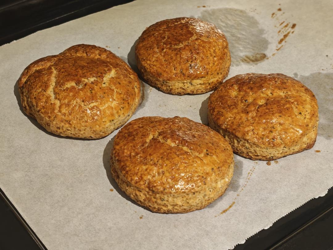 烤了两盘奶酪司康作下午茶点
