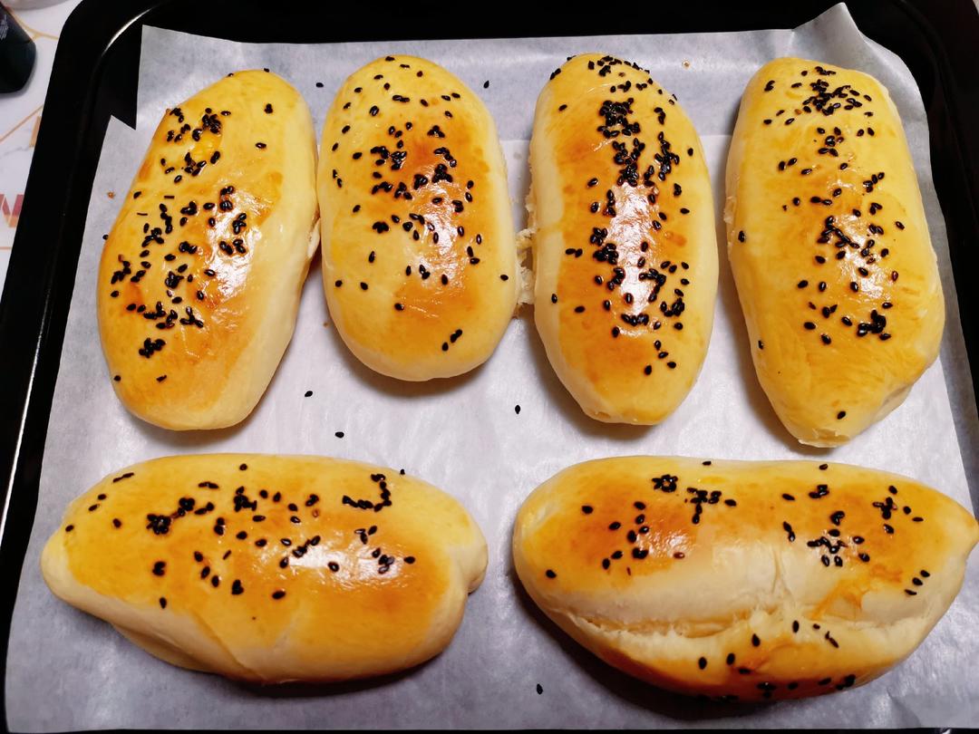 图一有黑色豆豆的用了普通面粉即中筋粉做的,而图二表面上色深些的是用高筋粉做的,不知道为什么用普通面粉做总吃到些我认为不是...