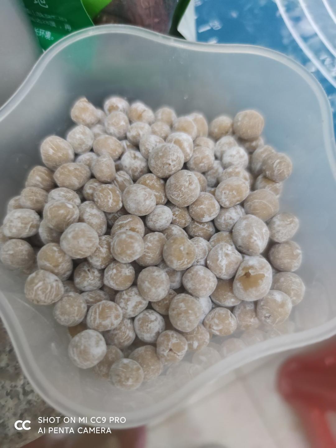 黑糖珍珠鲜奶!!简单,做了75g的木薯粉量,按比例来放配料,珍珠揉不圆可以在手心沾点水,保证圆圆的!