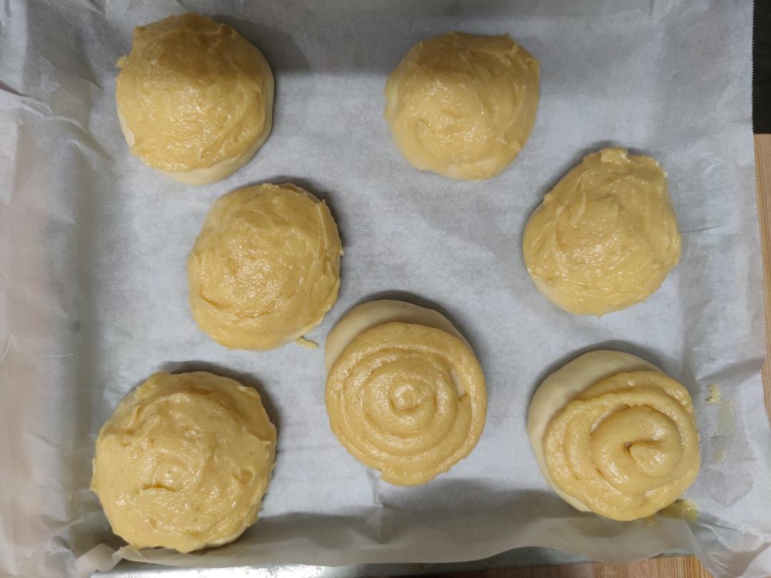 一星期前做的,奶油倒多了,只好又加了面粉,组织很细腻,但是长得不够高