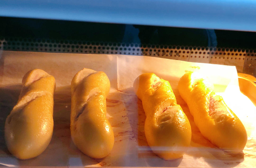 🤍偏爱有韧性的面包~自从上次尝试了碱水小丸子胆子大了许多~芋泥炒干了抹馅不均~下了狠手割包~太丑了🤣