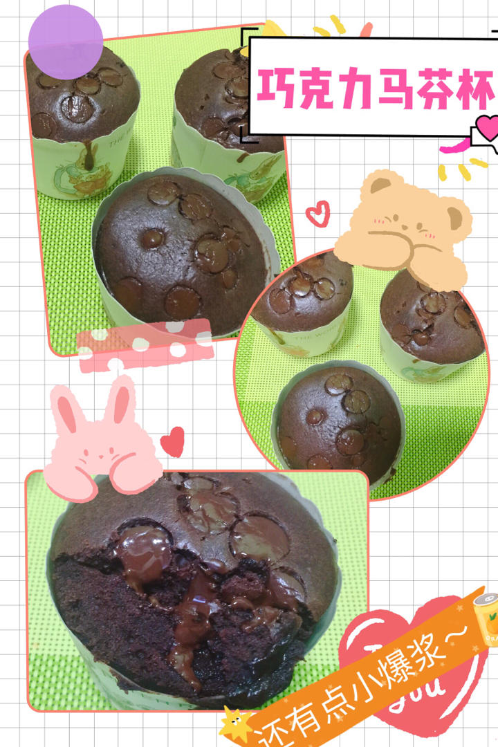 感谢作者,尽管这个量只够做三个小杯子的,但自己加大量就可以了,里面的巧克力我放的多点了,反而有点爆浆的样子,哈哈,非常好...