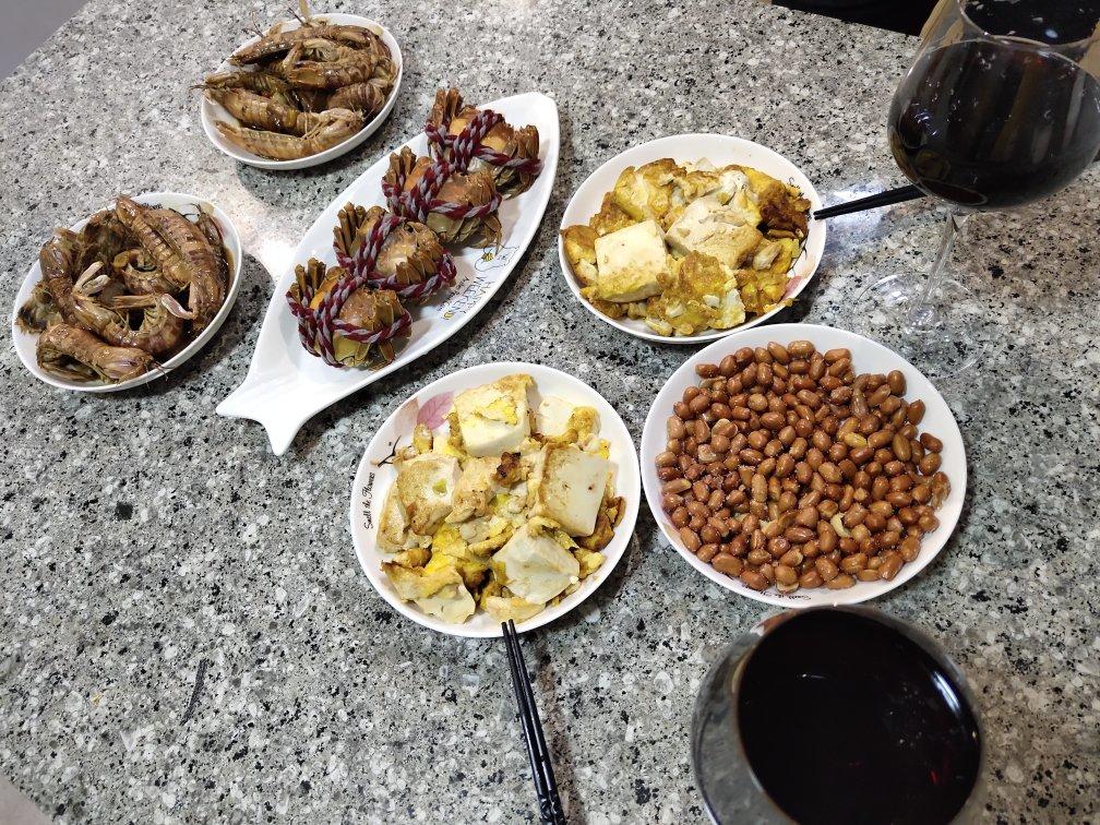 螃蟹 皮皮虾 鸡蛋豆腐 花生米