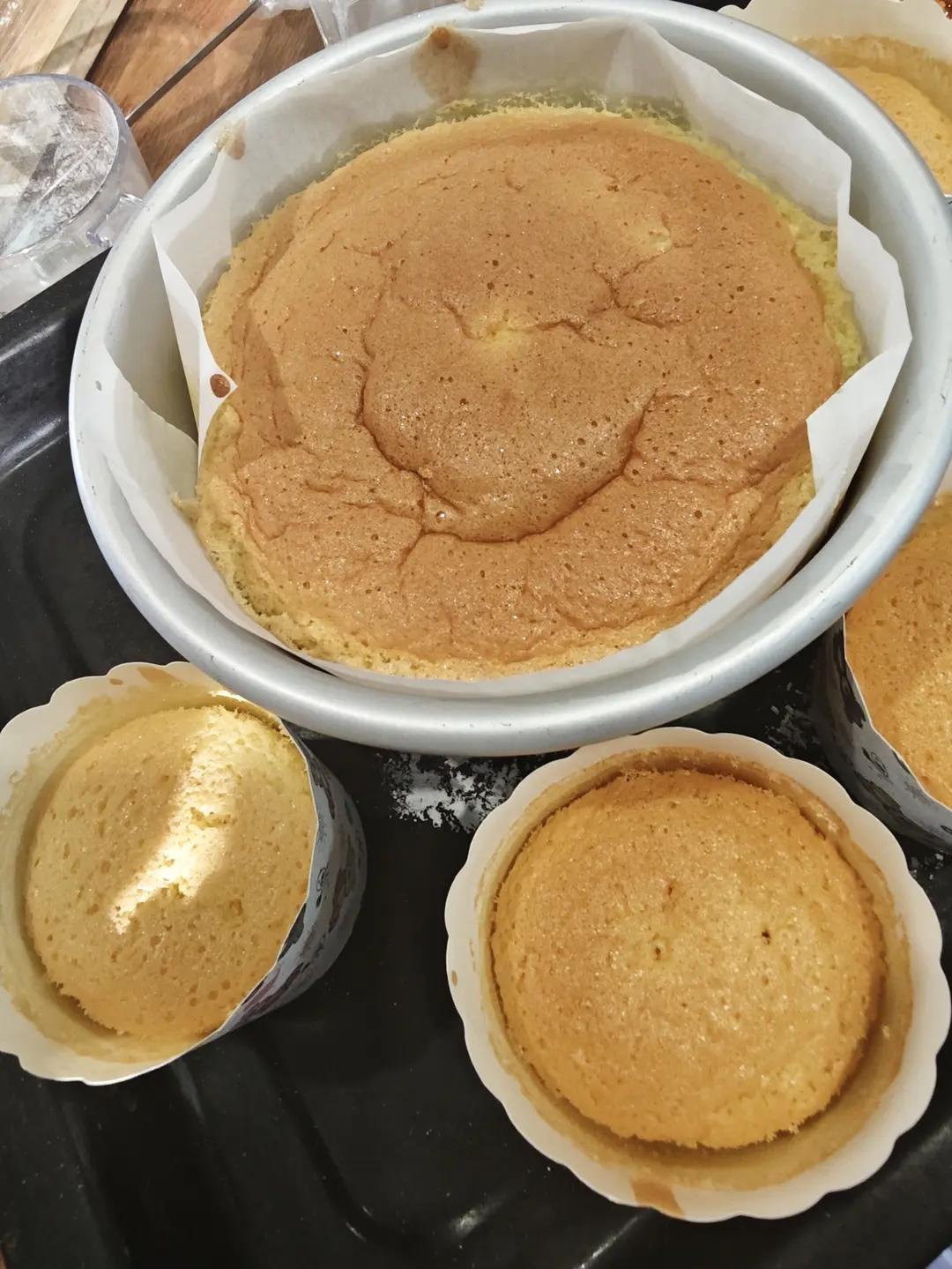 严格按照方子的步骤,糖减了一些,打发时间有些长(大约十五分钟),不知道是不是正常,但是出来的算一次成功,在烤箱里鼓鼓的很...