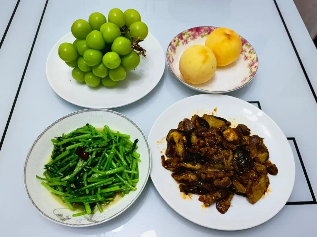 用了半勺蜂蜜,尝着略甜了些,下次可以再少一些。总体味道还是不错滴! 还炒了其他菜,一起码在碗里