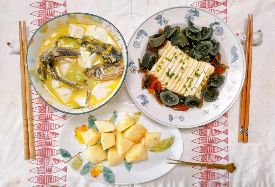 都是老公准备的,煮鱼汤,下盒马的各种食材。热油浇沙姜,豉油,芫荽葱。