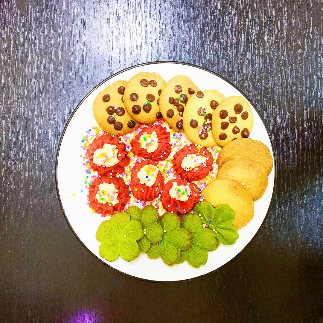 之前做了几款美式大曲奇,有60g一个,90g以上一个,总觉得30g可能没那么大,结果真的滩成了大曲奇,周围一圈是非常的脆...