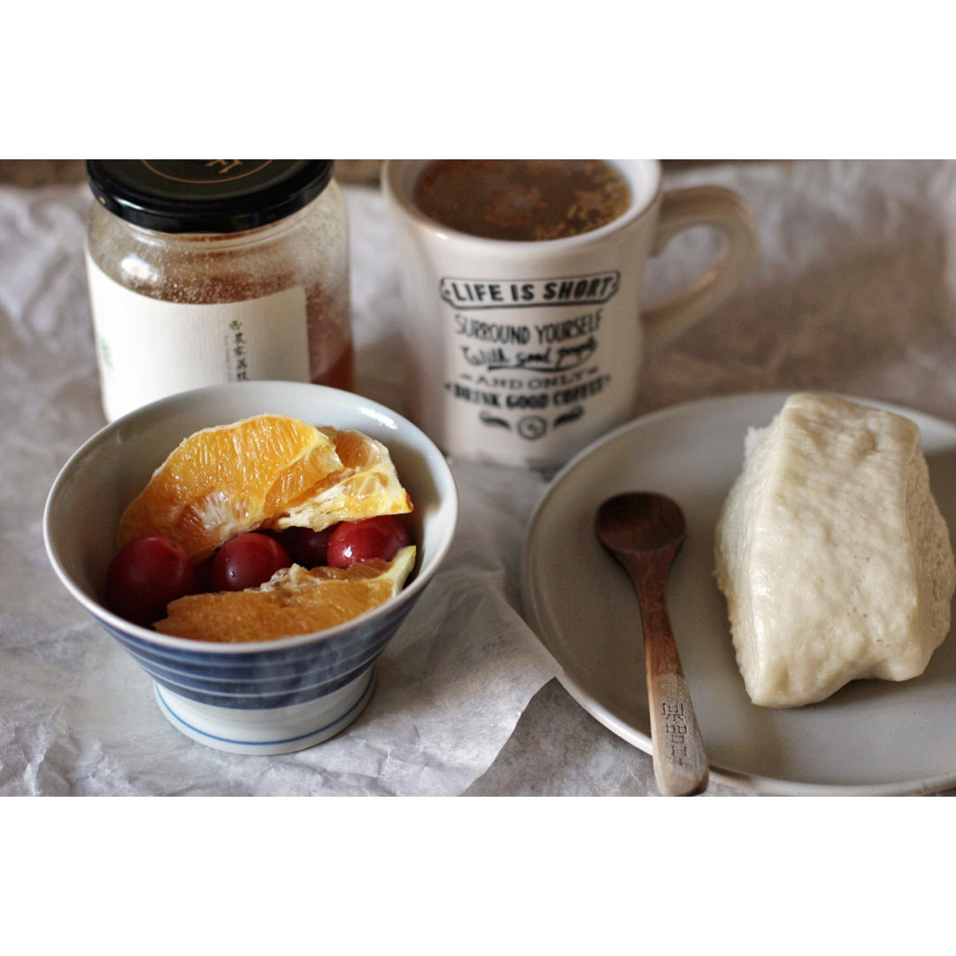 白芝麻燕窩佐白饅頭、番茄橙子
