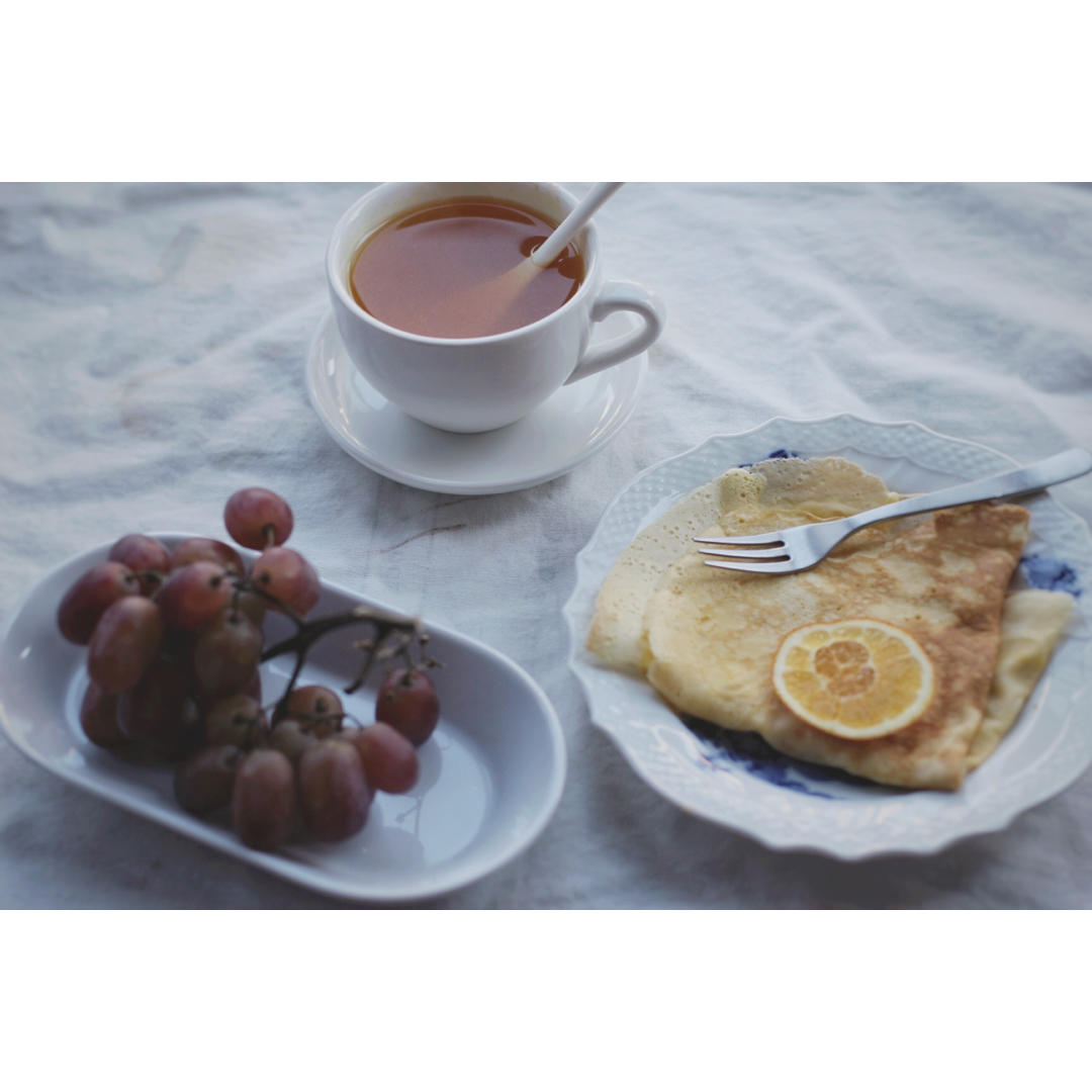姜黃茶佐可麗餅、提子