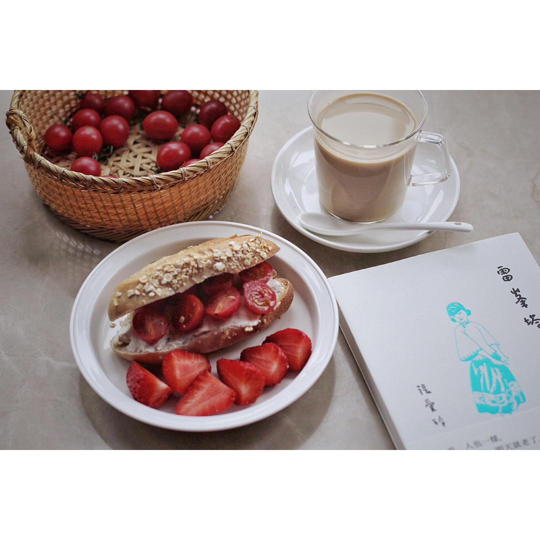 奶咖佐低油低糖全麥短法佐奶酪小番茄、草莓
