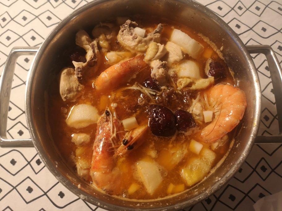 初次尝试椰子鸡,加了虾以后颜色就变得非常美好了~(白白橙橙的)全程就是前期的取椰肉和整鸡切块的准备工作比较繁琐,但是鸡入...