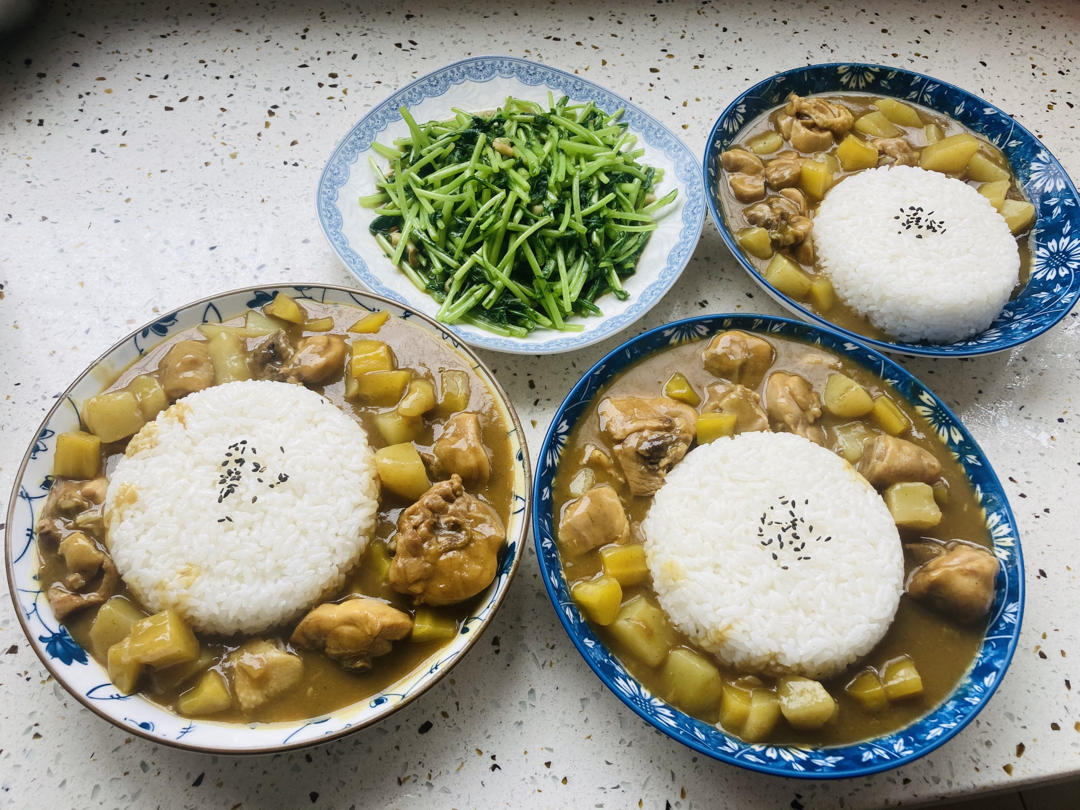 咖啡鸡块饭+清炒茼蒿