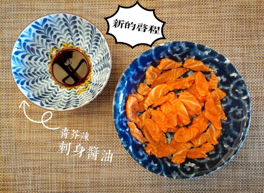 中午,巧妇难为无『菜』之炊的当下,惊喜发现冰箱零度保鲜层还剩余了一半的三文鱼。