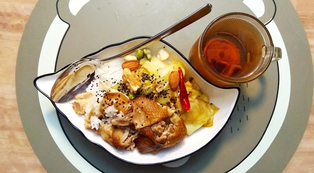 米饭,火爆甘蓝,坚果,黑芝麻,柠檬膏水