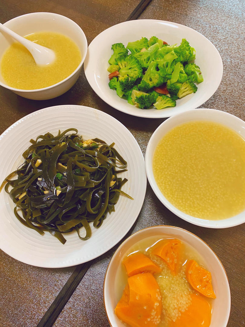 小米粥,西兰花,海带丝