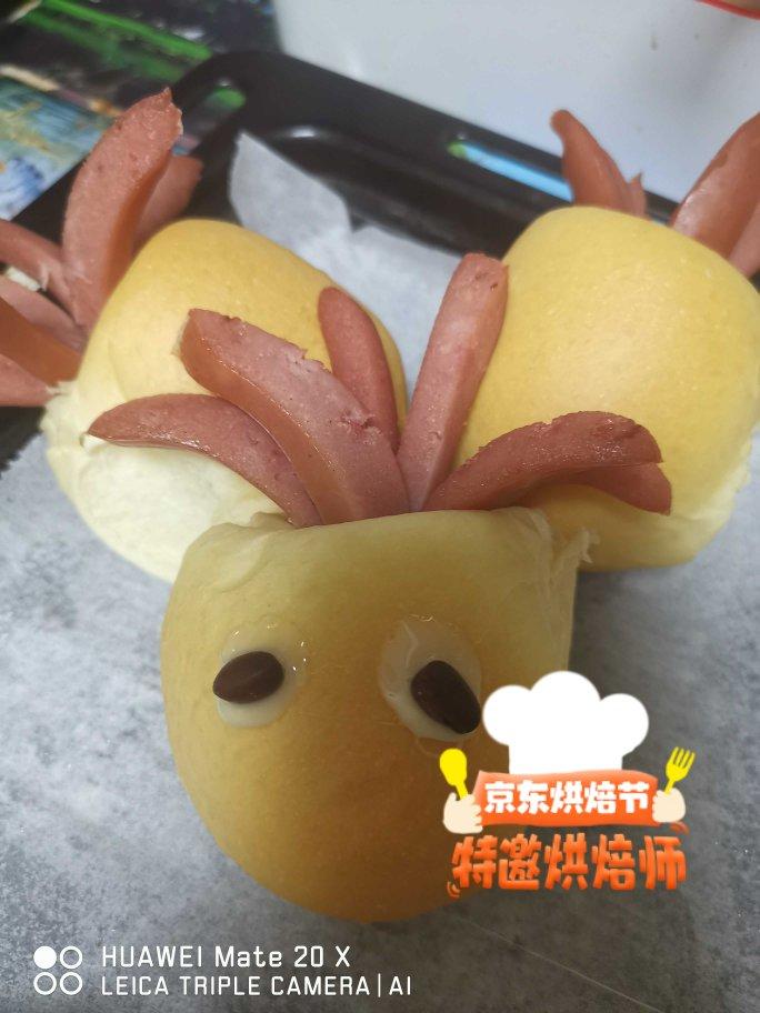佃煮黑豆被我活活放坏了,只好换成蜜红豆,减了10克黑糖粒;二发50分钟到位;这次整形注意窄一些了。