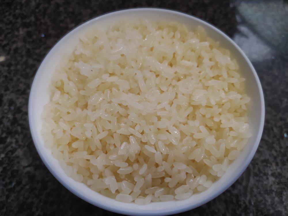 做菠萝披萨切菠萝丁时,得了小半碗纯纯的菠萝汁,尝试着做菠萝汁糯米饭,...