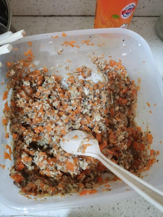 我没法虾皮,用了香菇,然把饺子馅放锅里炒了一下,纯素馅太好吃了。