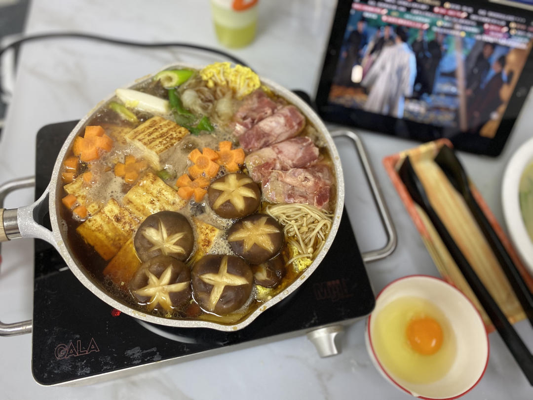 葱和牛肉用黄油煸炒一下,豆腐双面煎黄,直接倒寿喜烧酱油 和水,简单好吃!