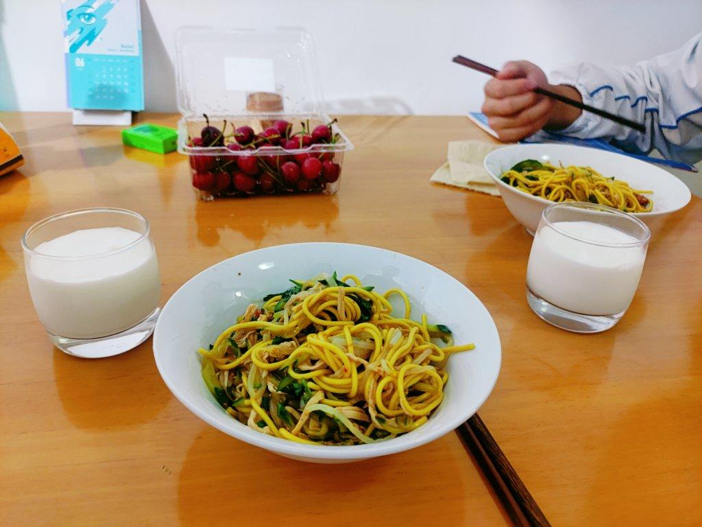 宵夜:鸡丝凉面➕牛奶