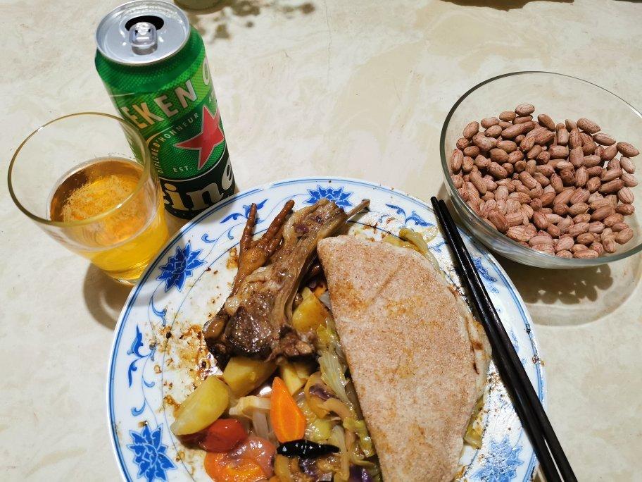 卤菜,超市买到泳帽泳镜。阿拉伯大饼。