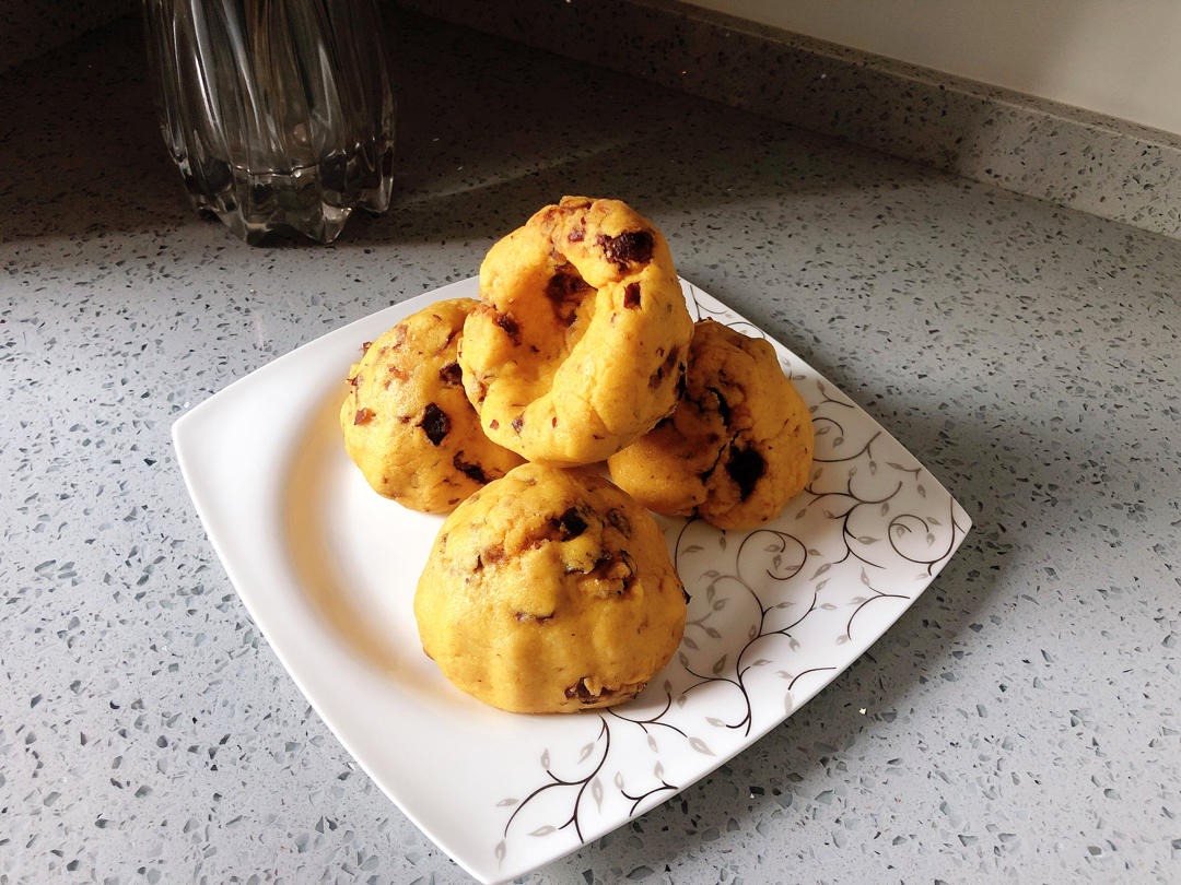 包包子剩了一点发面,烫了2倍的玉米面,切点红枣肉,蒸了一锅红枣...