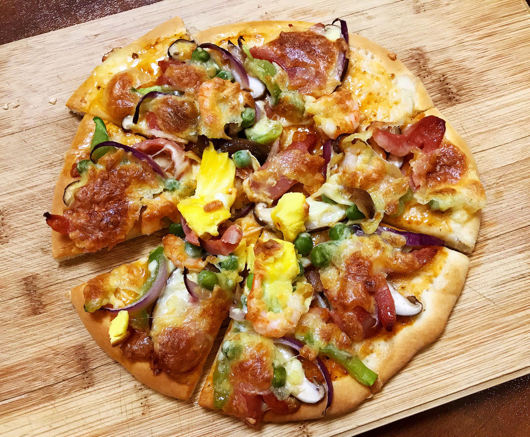 早上锻炼回家晚了,早饭也跟着晚了,本想不吃午饭了,结果娃说饿了,还好之前做了披萨坯冻着,无...