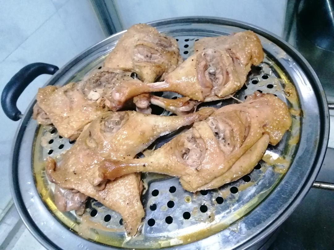 鸭腿蒸好了,分装速冻,吃之前回温烤箱烤一下