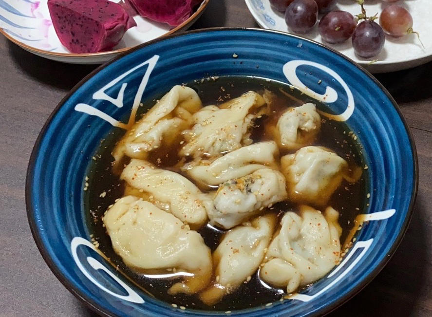 姐妹们下午来家里做客 剩下一些水果。自己晚上煮了10只酸汤水饺