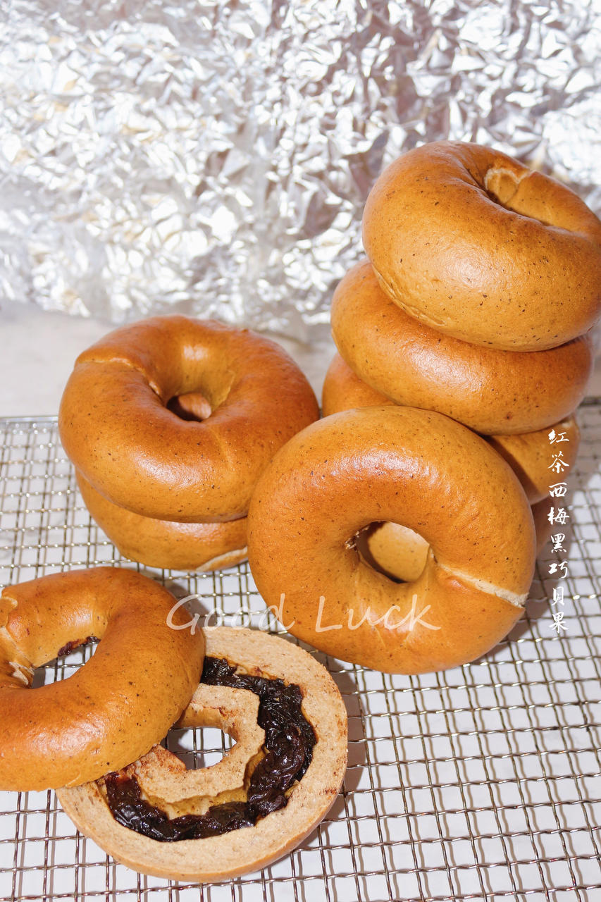 红茶西梅黑巧贝果,酸中带甜,西梅不对劲或者放多了,连我这个能吃酸的都觉得有点儿过于酸了,不过喜欢酸味的应该会觉得很开胃哦...