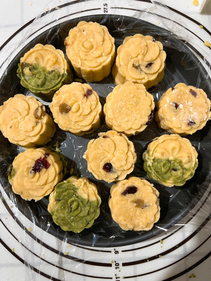 脱皮绿豆泡水前250g,奶粉50g,黄油50g,糖20g,水饴15g,4g朗姆酒泡葡萄干和蔓越莓共30g#晚餐•2021...