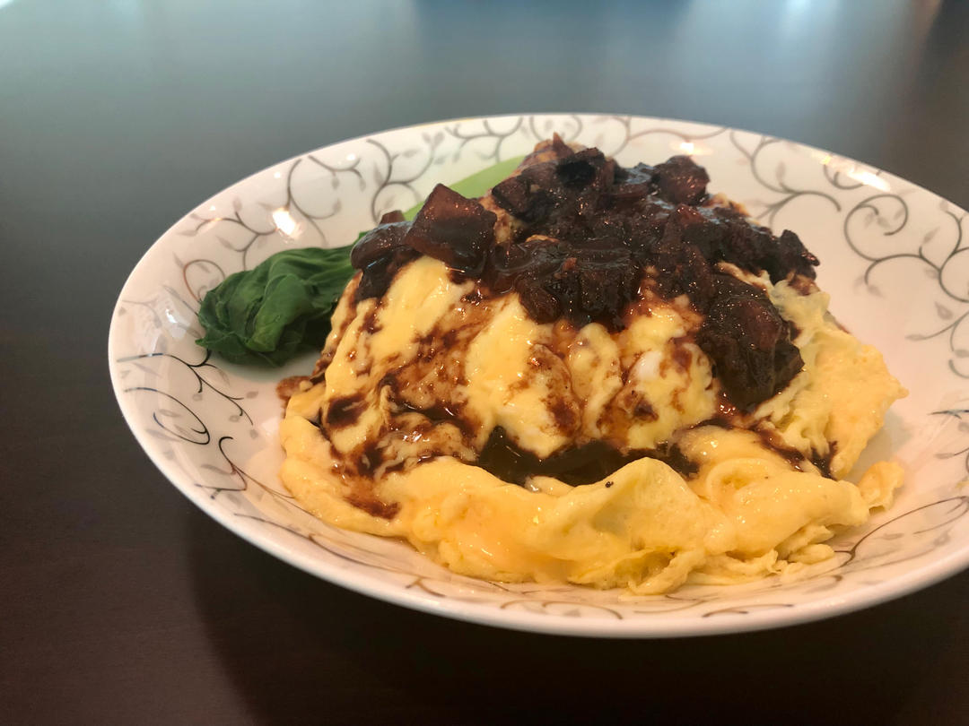 弄那个蛋包太难了,我选择直接摊个半熟蛋饼放上去,酱按方子炒的,好吃😋
