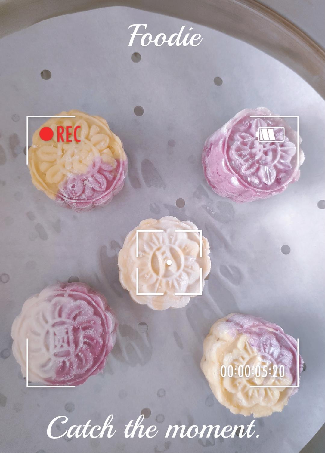 用相同比例做的奶黄馅宝宝月饼(用了紫薯 蜜薯还有山药