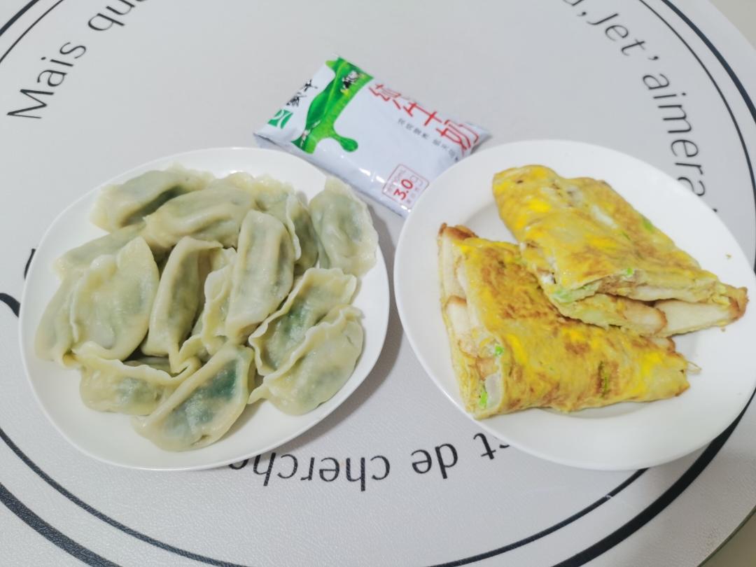 今日份韭菜🥩水饺🥟葱香蛋抱面包🍞