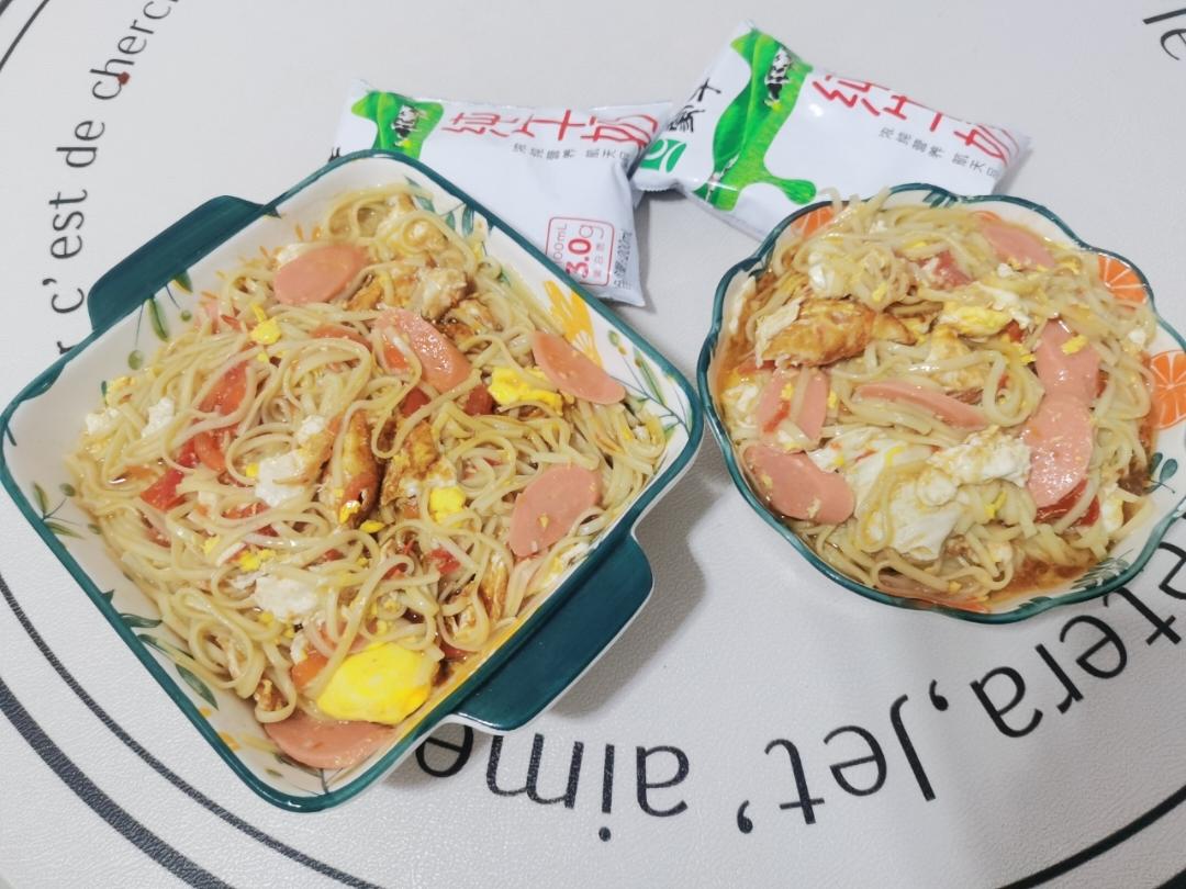 西红柿🍅鸡蛋 焖面+牛奶🥛