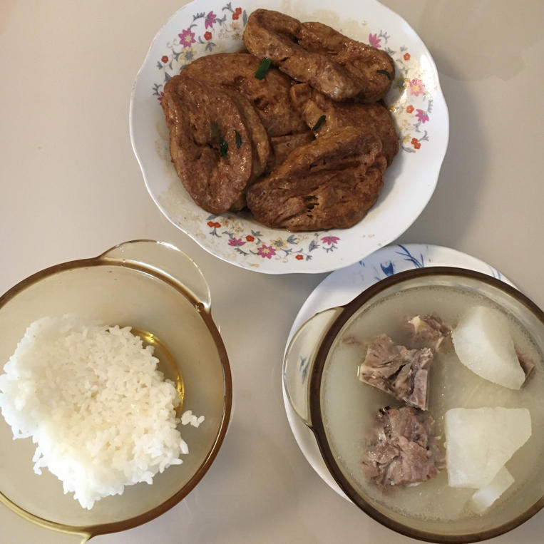 萝卜小排汤 素鸡 芹菜炒鸡蛋