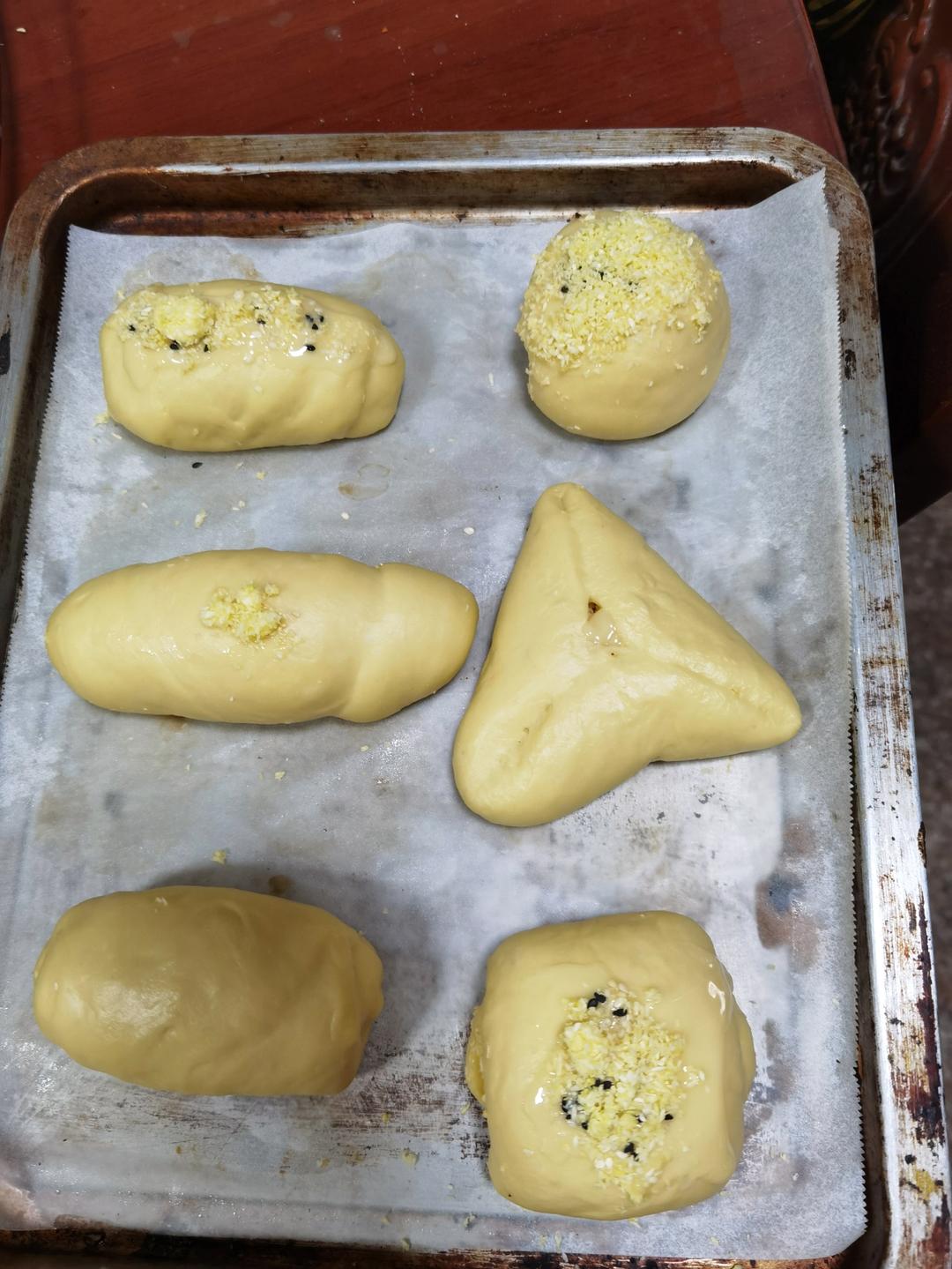 按照这个方法做了小面包,180度烤了19分钟。表面抹上炼乳,还不错。谢谢方子。