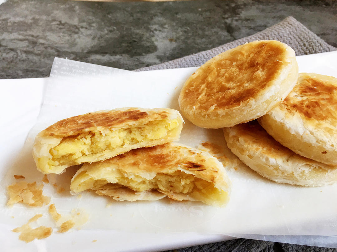 绿豆酥饼,吃过外面卖的,太甜了齁嗓子,还是自己做吧,黄油和玉米油的酥皮,馅儿糖量适中,挺好吃,连吃了两个,午饭都省了#午...
