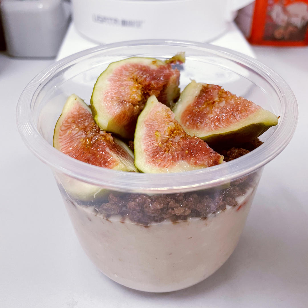 巧克力味隔夜酸奶麦片铺一层阿华田脆,顶部加无花果