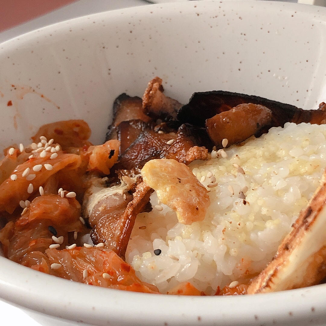 中午煎了腊肉鸡蛋还有点泡菜