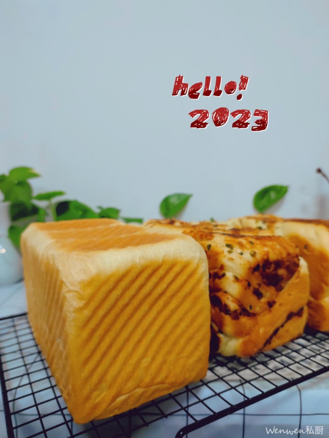 2023第一炉吐司,一炉三个,两个肉松香葱,一个牛奶原味!