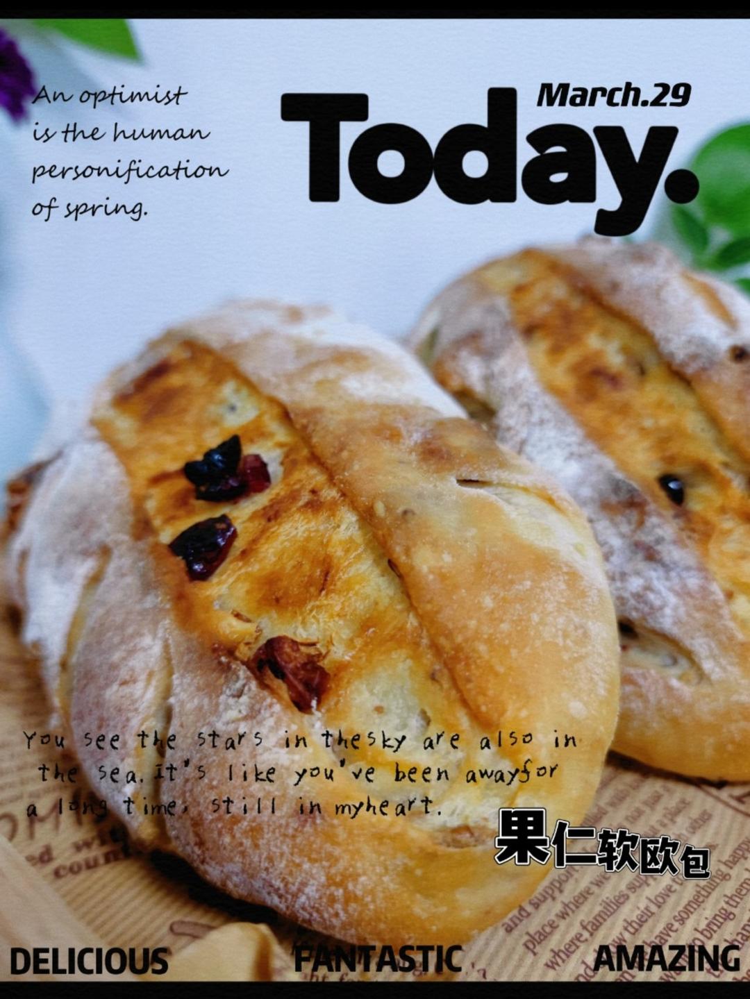 买了一袋欧式面包粉,上次做了一次,剩了一些,下午做了简单的果仁软欧包,非常香,工具不齐全,凑合...