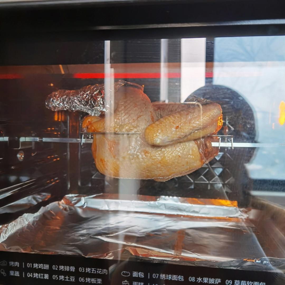 净重4.2斤的桃园鸡,这次去了头、颈和爪子,250℃/50分钟+150℃/20分钟,多烤了一会儿果然皮超...