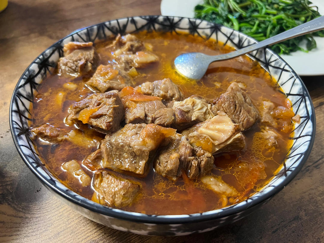祝你下厨愉快呦😘,亲爱的厨友!牛腩和番茄,绝对是最佳搭配,炖得软糯糯的,用来盖饭或浇面都是最好的吃法😄