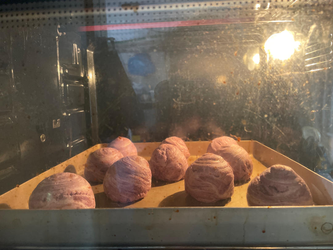 就我一个人觉得这酥皮在最后成型阶段一擀就裂,一包就折吗?将就着歪瓜裂枣烤出来得了,疫情期间不能浪费啊!180°/170°...