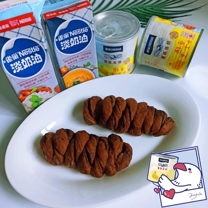 今天又做了可可巧克力夹心卷,加入了雀巢淡奶油和雀巢芝士练奶,超级软香好吃!!!雀巢