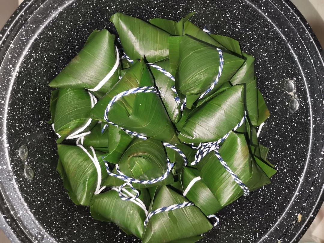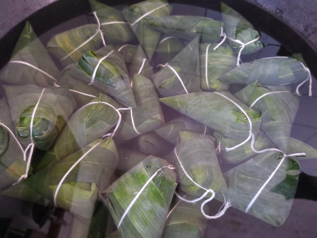 又到一年粽子节,这是老妈包的第三锅送亲友的,扎粽线这活我包干,老灶台一锅就可以煮60多个粽子,比电饭锅省事还香。#晚餐•...
